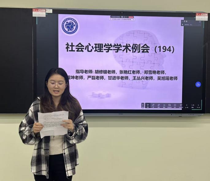 (通讯员:钟佳乐)2025年11月4日19时00分至21时00分,第194期社会心理学学术例会在永利yl23411东校区16教A103室如期举行。本次例会采取线上线下相结合的形式,由本科生科研助理姜静楚同学主持。主题为“毕业论文开题报告”与“毕业论文预答辩”。参加本次例会的老师有郑雪艳老师、严磊老师、王丛兴老师和杨林川老师(三峡大学),员工有15位心理学研究生,12位本科生科研助理。