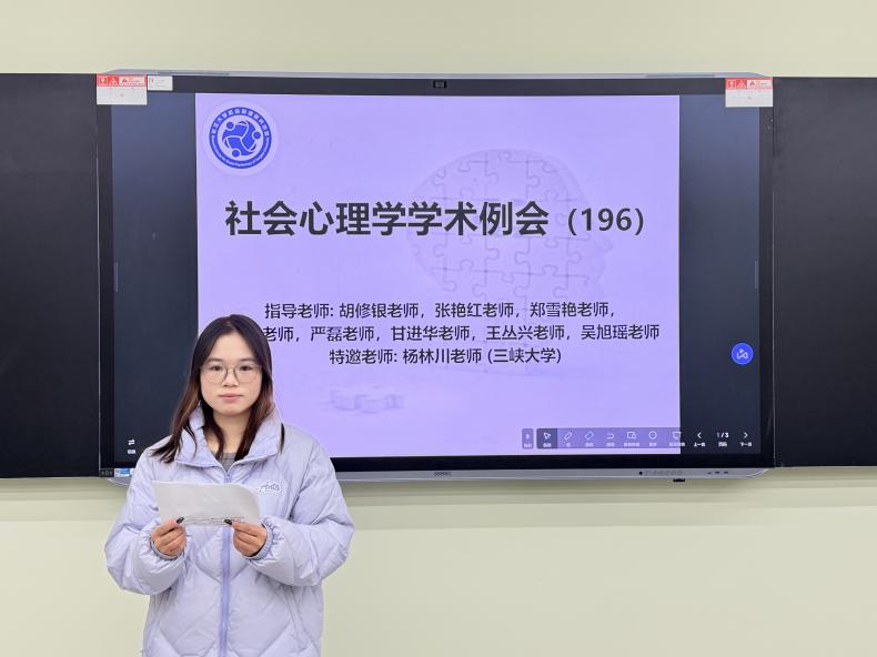 (通讯员:唐可心)2025年11月18日19:00至21:00,第196期社会心理学学术例会在永利yl23411东校区16教A104室如期举行。本次例会采取线上线下相结合的形式,由本科生科研助理袁芯丽同学主持,主题为“文献分享汇报”。参加本次例会的老师有甘进华老师、吴旭瑶老师和杨林川老师(三峡大学),员工有9位心理学研究生,16位本科生科研助理。