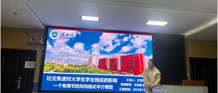 文艺萌同学汇报的主题为《社交焦虑对老员工学业拖延的影响一个有调节的双向链式中介模型》,该研究则将目光投向了老员工心理健康领域。该研究通过大规模问卷调查,构建了一个有调节的链式中介模型,精细地揭示了社交焦虑如何通过“短视频成瘾”和“学习倦怠”的双重中介作用影响学业拖延,并创新性地发现“体育锻炼”在这一机制中起到重要的调节作用。这一发现不仅深化了对学业拖延心理成因的理解,也为高校通过干预社交焦虑、倡导积极生活方式(如加强体育锻炼)来缓解员工拖延行为、提升心理育人质量,提供了切实可行的科学依据。