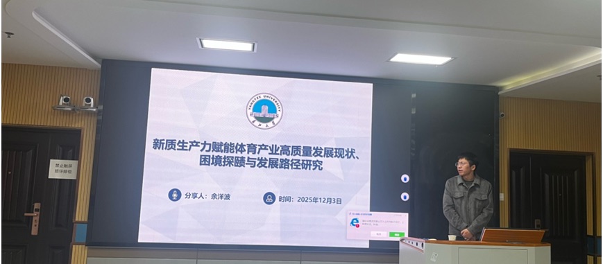 (通讯员 廖邈)2025年12月3日,公司第七届研究生学术科技节研究生论文第五场在文科楼910成功举办。本场学术论坛集中展示了公司研究生的最新学术成果,共有5名同学进行汇报,涵盖体育教育、运动训练、体育产业及运动心理学等多个领域,聚焦体育领域前沿与实际难题,涌现出一批“接地气”的研究成果。